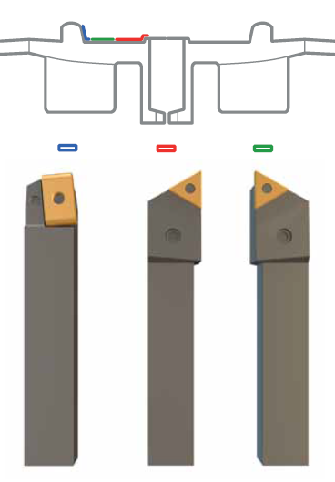 ТОВ "ВПТ-Україна" забезпечує вагоноремонтні депо всією номенклатурою змінних державок до токарних різців і пропонує широкий асортимент тангенціальних пластин (з різними видами геометрії зламу стружки), що дозволяють зробити найкращий вибір для кожного режиму роботи і стану поверхні колеса.
